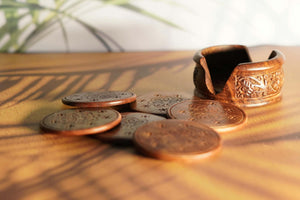 These handcrafted wooden coasters are a unique and stylish way to protect your furniture from damage. The coasters are made from high-quality wood and feature intricate carvings. The matching coaster holder is a convenient way to keep your coasters organized.