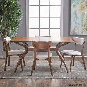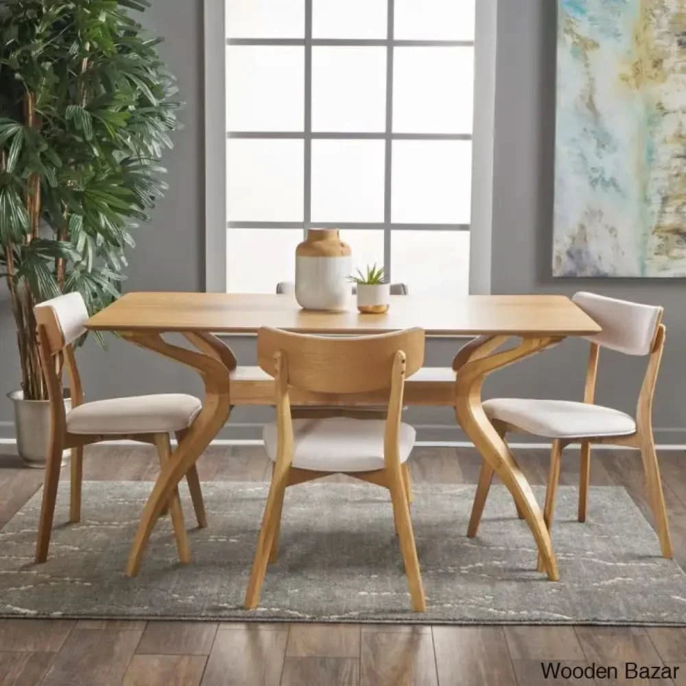 - Mid-century Design: Blending gorgeous hourglass design and smooth upholstery, our five-piece dining set offers a mid-century modern look to your interior space. With its clean lines and understated look, this set uses new materials to reimagine a traditional design.