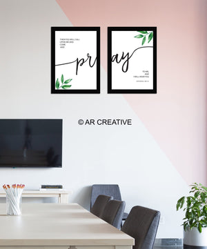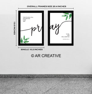 AR Creative Modern Art Calligraphy, Wall Painting, Home, Office Decor, Living Room, Bible Verse Photo Framed Wall Poster, Bible Quotes Print with Frame (13.6 inch x 10.2 inch) Set of 2