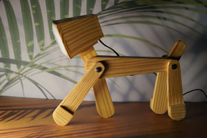 Illuminate your space with a touch of whimsy and warmth with this charming wooden lamp shaped like a playful puppy. Crafted from natural wood, this handcrafted lamp features a soft glow that casts a cozy ambiance perfect for bedtime stories or relaxing evenings.