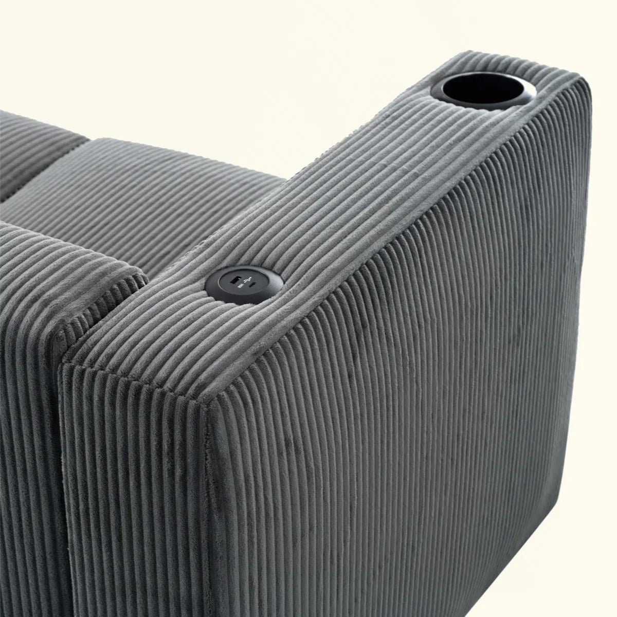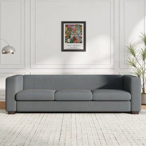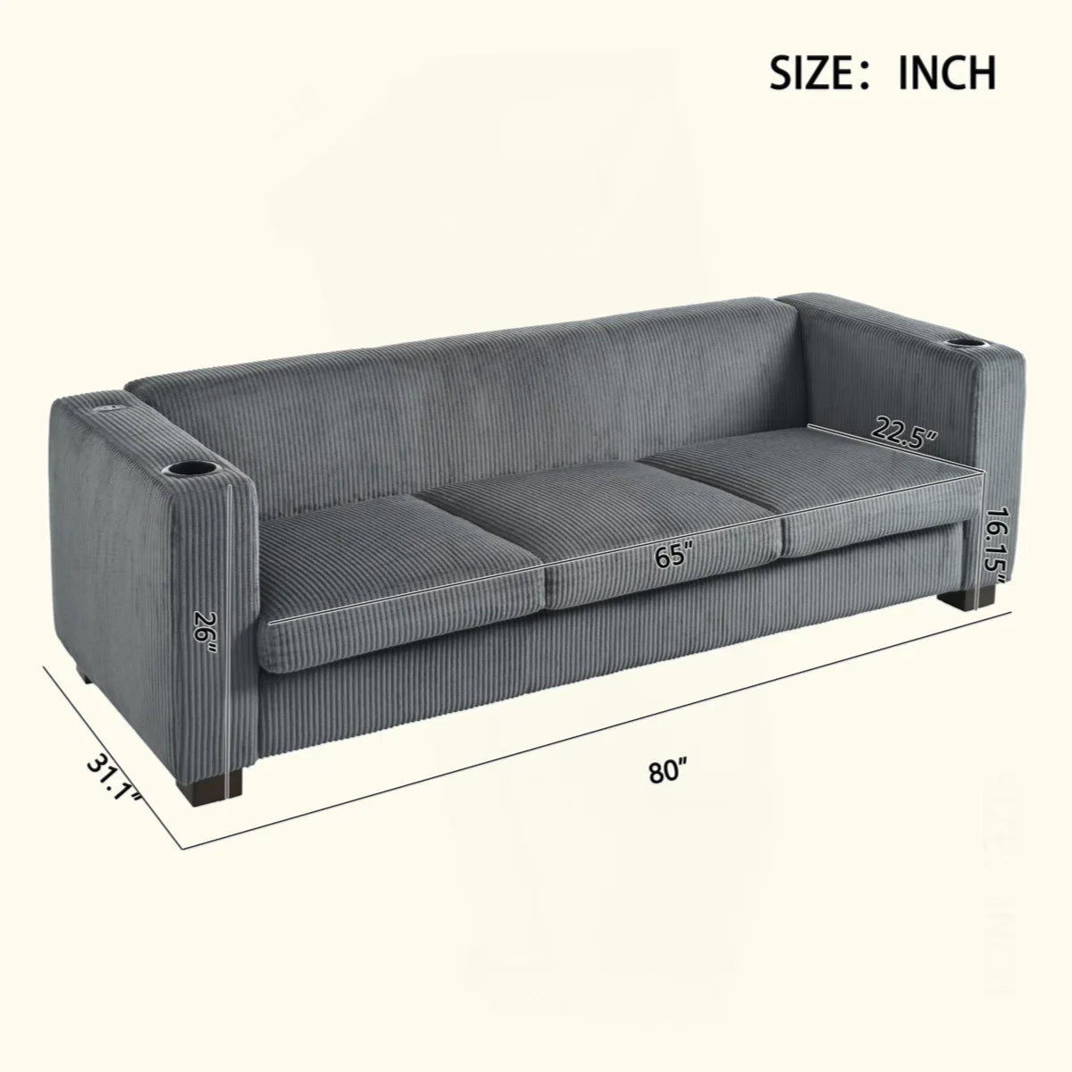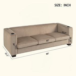 Bernal Upholstered 3-Seater Sofa With Wooden Frame & Cup Holders