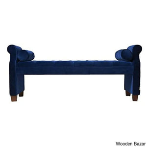 Details: The entryway bench is the perfect addition to any living space looking to add a bit of a modern flair. High quality fabric wraps a solid wood frame made from kiln dried birch which provides exceptional support and stability. Crafted beautifully with rolled arms, hand tufting along seat, decorative matching cord trims, and 2 matching bolster pillows, this bench brings class and lounging comfort to any room in the home, whether it’s used as additional seating for guests or extra space to spruce up your home decor. Features: Upholstery Color: Navy Blue Bench-made home furnishing products carefully hand built by experienced craftsmen and women A sturdy frame of kiln-dried solid hardwood and 11-layer plywood for strength and support that will last Upholstered in high-quality woven fabric atop premium high-density flame-retardant foam for a luxurious medium firm feel Assembly Required: Yes Specifications: Overall Product Dimensions: 25" H x 60" W x 20" D Arm Height: 25" Weight Capacity: 250 lbs Seat Height: 18"