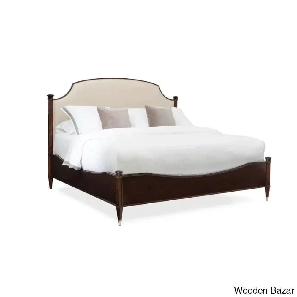 Fall asleep with ease each night in this magnificent bed and enjoy the royal treatment. Notable in every way, its defining style bridges old and new with an exquisitely upholstered fabric headboard framed in a rich Mocha Walnut finish. Boasting a traditional silhouette, this elegantly updated creation offers incomparable fit and finish. An acrylic post option is available while metal ferrules in Stainless Steel on the front legs add an extra element of glamour. With classic heritage and refreshing nuances, it’s the just type of bed you can’t wait to come home to.