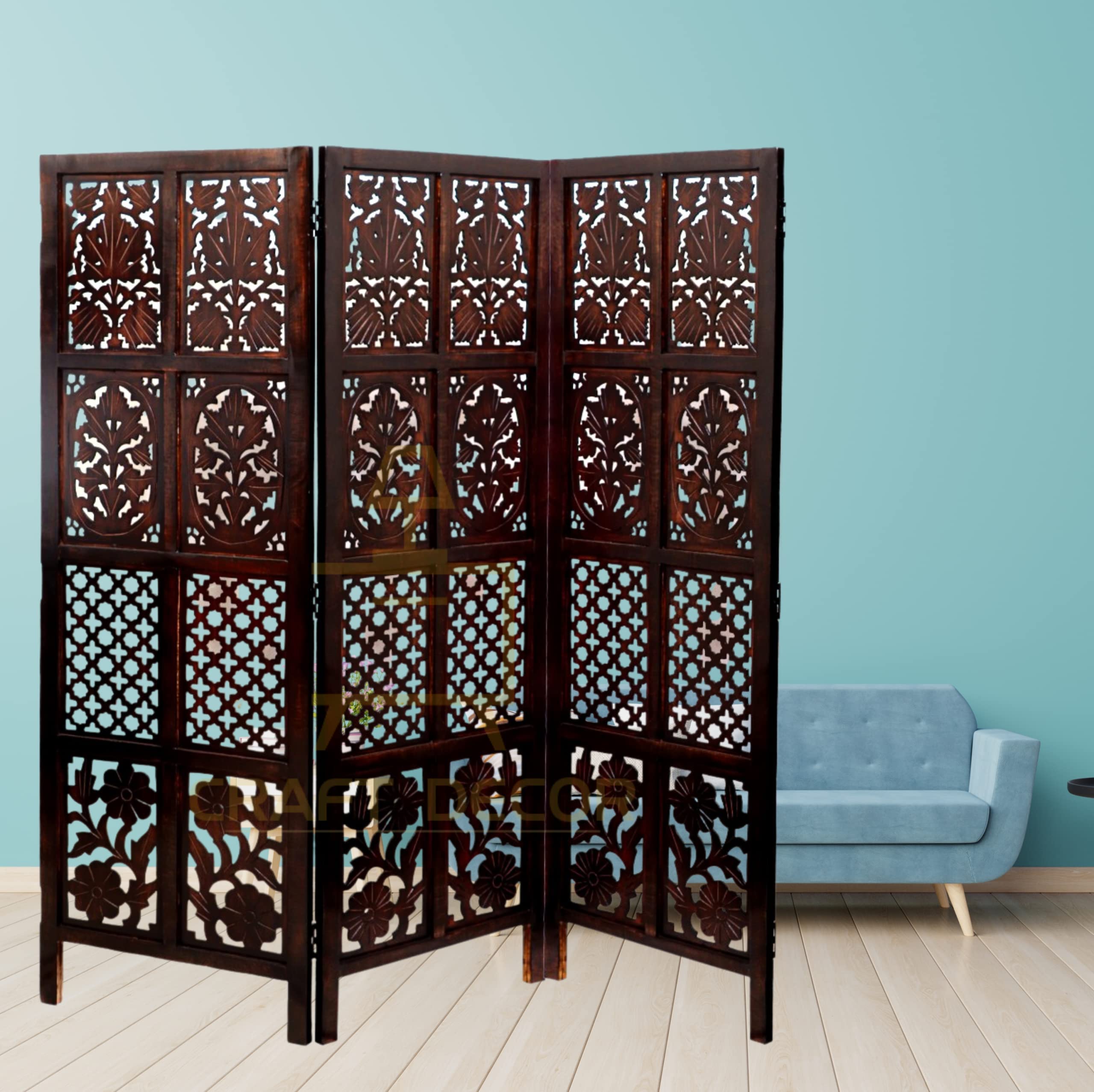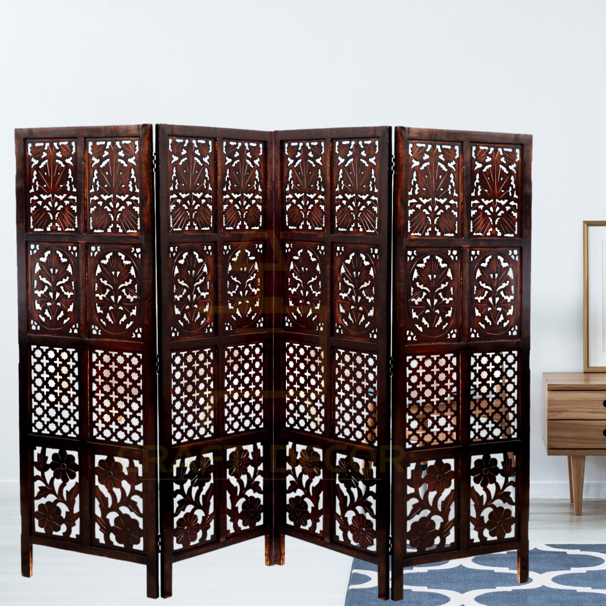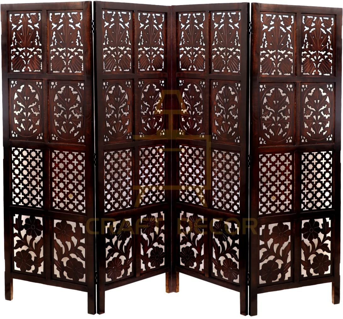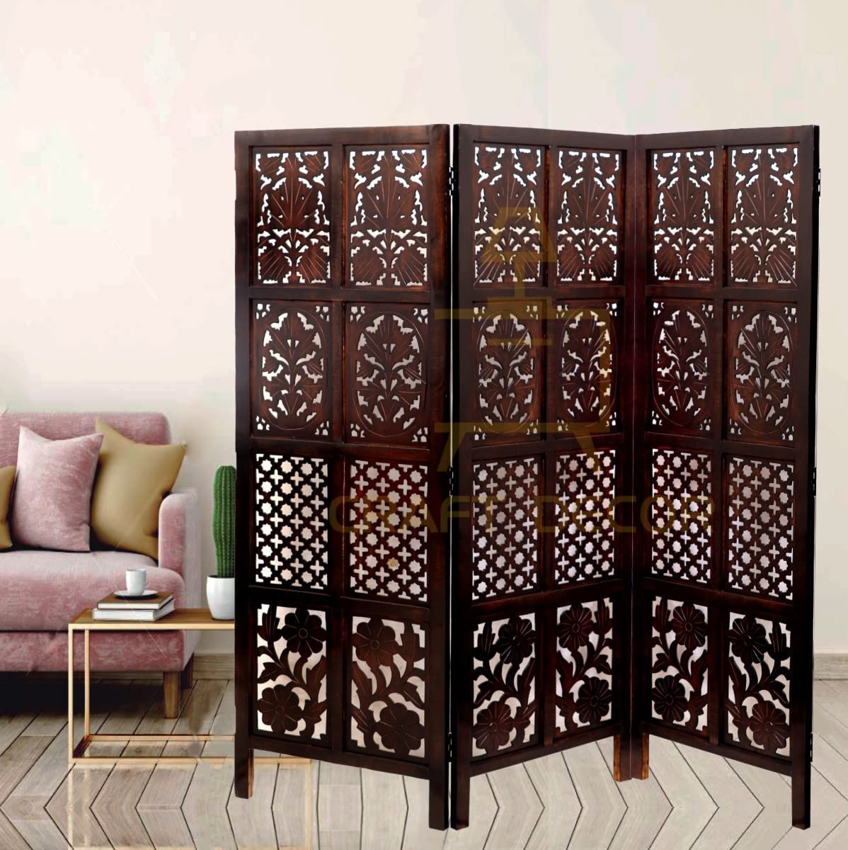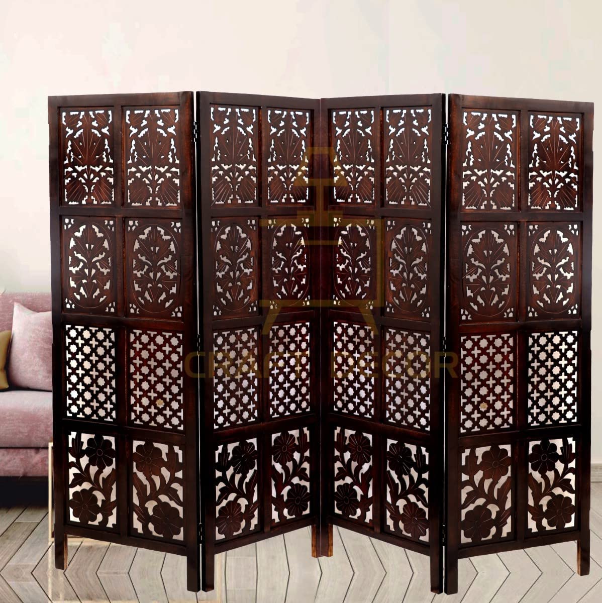 DECOR bring you this Handmade Folding Wooden Room Divider /Wooden Partition for Living Room / Screen made from premium quality Mango Wood with beautiful floral carvings that gives an elegant and traditional look to your living room. Each panel comes in a standard size of Height approx. 60 inches (5 feet) and 20 inches wide. We provide shipping to all parts of India. We provide best possible services to all our clients and believe in strong customer relationships.