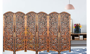 CRAFT DECOR bring you this Handmade Folding Partition Screen / Room Divider made from premium quality Mango Wood with beautiful floral carvings that gives an elegant and traditional look to your living room. The unit consists of 6 panels With Stands and each panel comes in a standard size of Height approx. 72 inches (6 feet) and 20 inches wide. We provide shipping to all parts of India. We provide best possible services to all our clients and believe in strong customer relationships