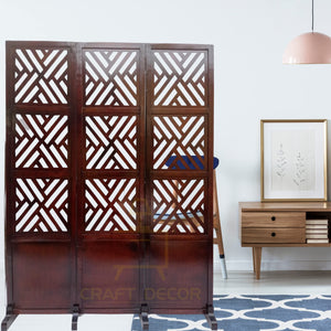CRAFT DECOR Wooden Partition for Living Room, Wood Screen Separator, Wooden Room Wall Dividers Wall Panels, Folding Screen for Living Room/Bedroom/Office/Restaurant/Pooja (Brown)