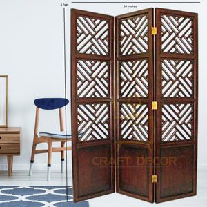 CRAFT DECOR bring you this Handmade Folding Partition Screen / Room Divider made from premium quality Mango Wood with beautiful floral carvings that gives an elegant and traditional look to your living room. Each panel comes in a standard size of Height approx. 72 inches (6 feet) and 20 inches wide. We provide shipping to all parts of India. We provide best possible services to all our clients and believe in strong customer relationships.