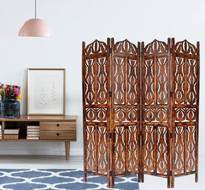 CRAFT DECOR bring you this Handmade Folding Partition Screen / Room Divider made from premium quality Mango Wood with beautiful floral carvings that gives an elegant and traditional look to your living room. The unit consists of 4 panels and each panel comes in a standard size of Height approx. 72 inches (6 feet) and 20 inches wide. We provide shipping to all parts of India. We provide best possible services to all our clients and believe in strong customer relationships