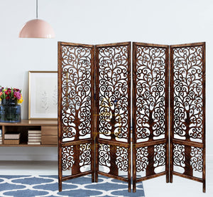 CRAFT DECOR Wooden Partition for Living Room, Wood Screen Separators, Wooden Rooms Wall Divider 4 Wall Panels, Folding Screen for Living Rooms/Bedroom/Office/Restaurant/Pooja Room