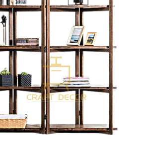 CRAFT DECOR Wooden Partition for Living Rooms, Wood Screen Separator with Shelf, Wooden Room Wall Divider 4 Wall Panels with Shelf, Folding Screen for Living Rooms/Bedroom/Office/Restaurant/Pooja Room