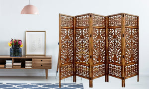 CRAFT DECOR Wooden Partition for Living Rooms, Wood Screen Separator, Wooden Rooms Wall Divider 5 Wall Panel, Folding Screen for Living Room/Bedroom/Office/Restaurant/Pooja Room