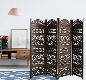 CRAFT DECOR bring you this Handmade Folding Partition Screen / Room Divider made from premium quality Mango Wood with beautiful floral carvings that gives an elegant and traditional look to your living room. The unit consists of 4 panels and each panel comes in a standard size of Height approx. 72 inches (6 feet) and 20 inches wide. We provide shipping to all parts of India. We provide best possible services to all our clients and believe in strong customer relationships