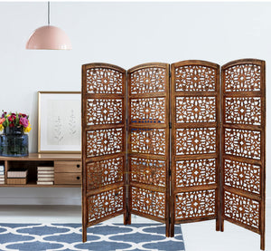 CRAFT DECOR bring you this Handmade Folding Partition Screen / Room Divider made from premium quality Mango Wood with beautiful floral carvings that gives an elegant and traditional look to your living room. The unit consists of 4 panels and each panel comes in a standard size of Height approx. 72 inches (6 feet) and 20 inches wide. We provide shipping to all parts of India. We provide best possible services to all our clients and believe in strong customer relationships