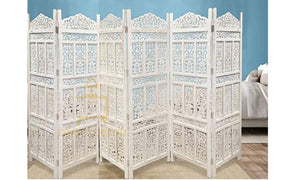 CRAFT DECOR Wooden Partition for Living Rooms, Wood Screen Separators, Wooden Room Wall Dividers 6 Wall Panels, Folding Screen for Living Room/Bedroom/Office/Restaurant/Pooja Room (White)
