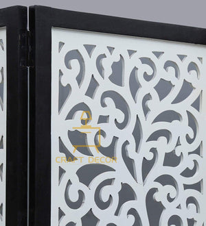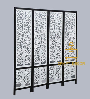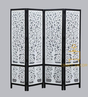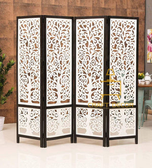 CRAFT DECOR Wooden Partition Screen Separator || Room Divider Traditional Handicrafts 4 Panels for Living Room, Bedroom, Office and Restaurant (Black & White)
