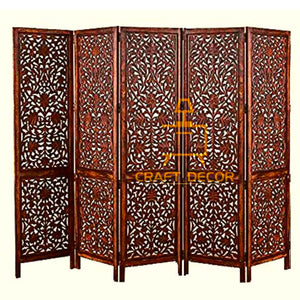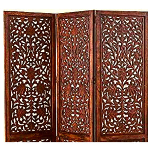 CRAFT DECOR bring you this Handmade Folding Partition Screen / Room Divider made from premium quality Mango Wood with beautiful floral carvings that gives an elegant and traditional look to your living room. The unit consists of 2, 3, 4, 5 panels and each panel comes in a standard size of Height approx. 72 inches (6 feet) and 20 inches wide. We provide shipping to all parts of India. We provide best possible services to all our clients and believe in strong customer relationships