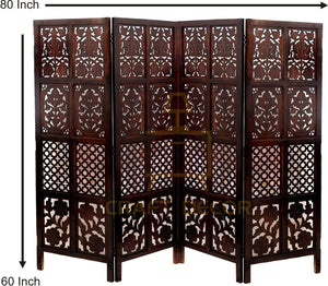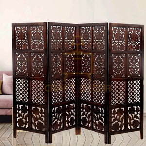 CRAFT DECOR bring you this Handmade Folding Partition Screen / Room Divider made from premium quality Mango Wood with beautiful floral carvings that gives an elegant and traditional look to your living room. Each panel comes in a standard size of Height approx. 60 inches (5 feet) and 20 inches wide. We provide shipping to all parts of India. We provide best possible services to all our clients and believe in strong customer relationships.