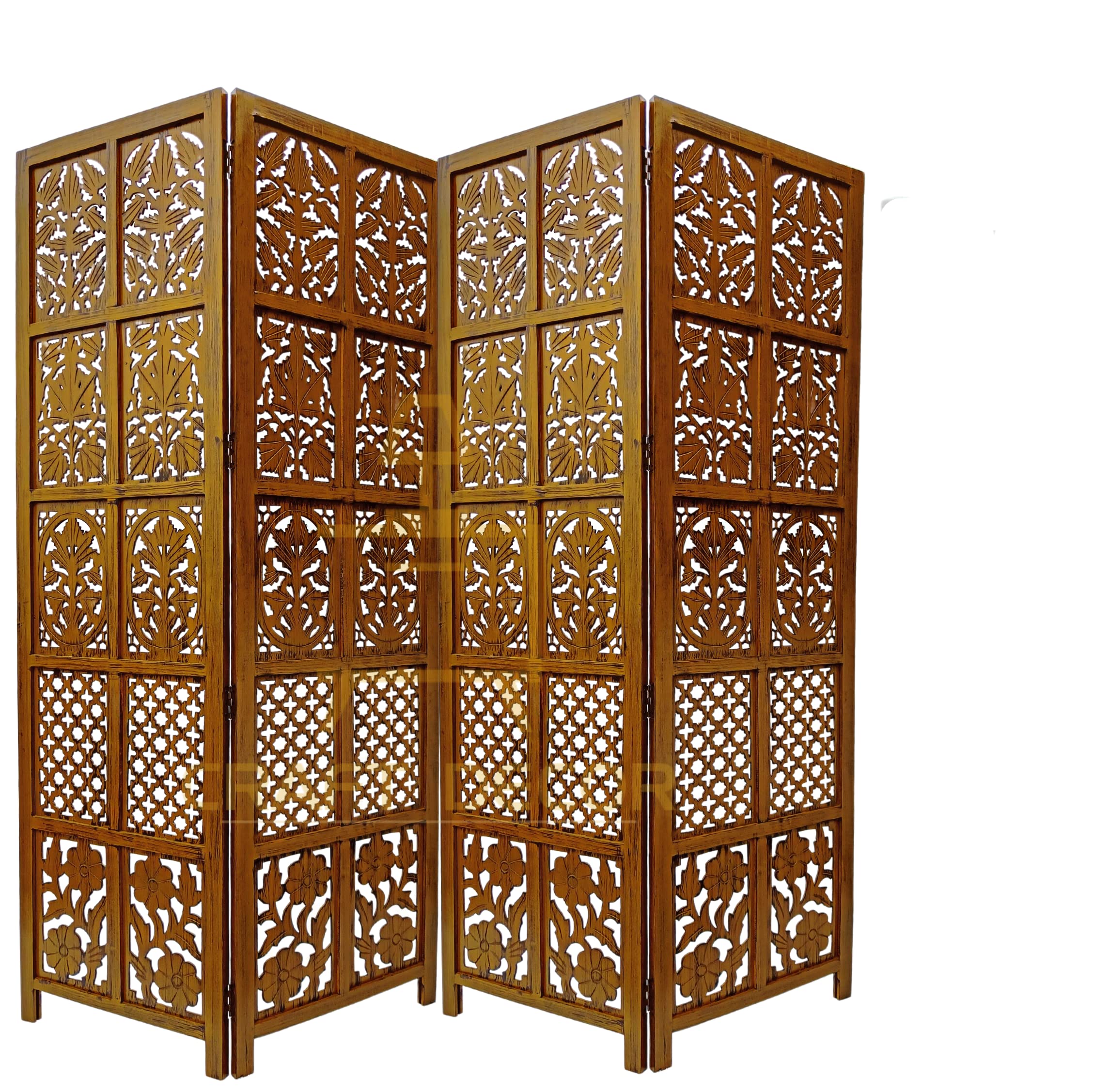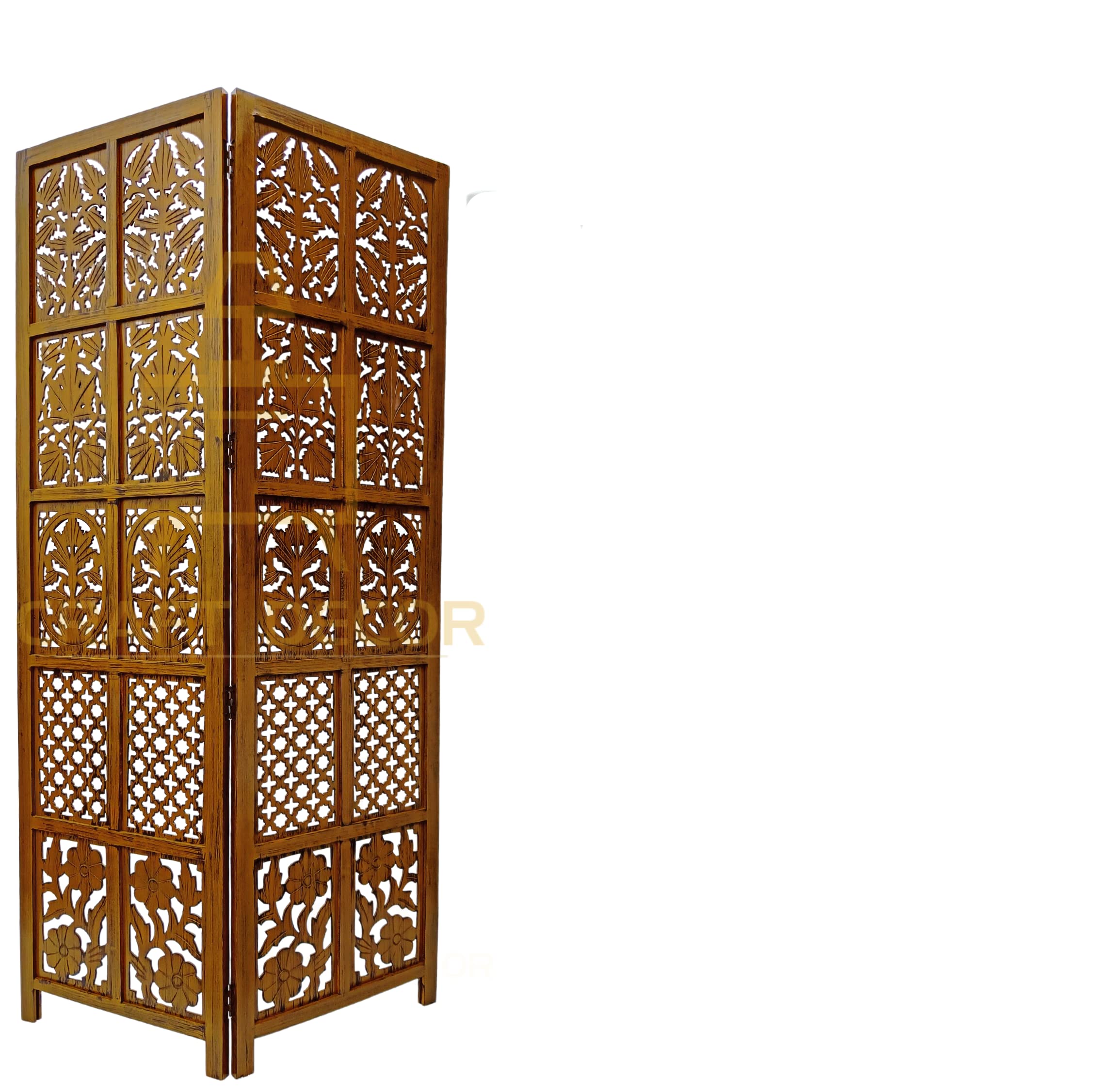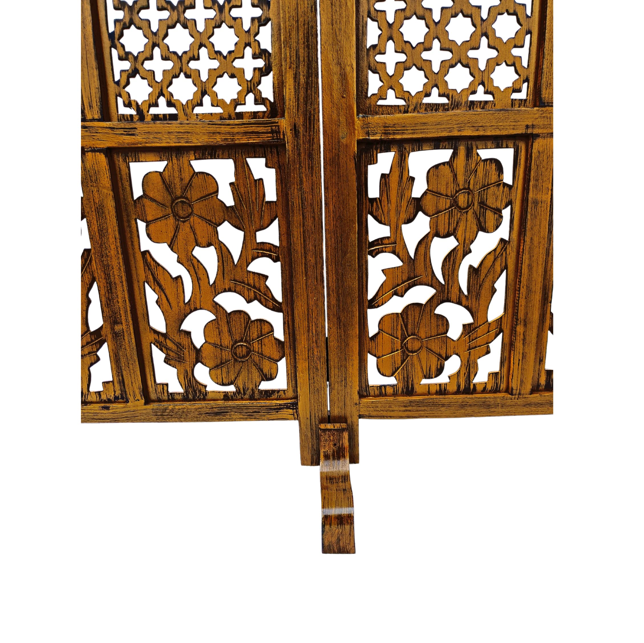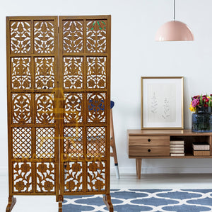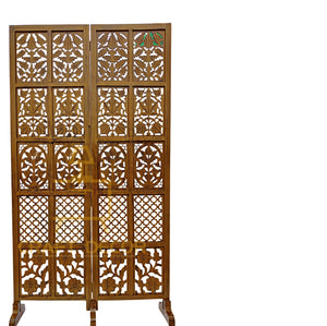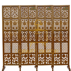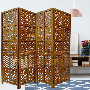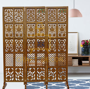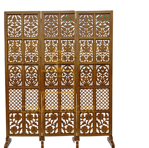 CRAFT DECOR bring you this Handmade Folding Partition Screen / Room Divider made from premium quality Mango Wood with beautiful floral carvings that gives an elegant and traditional look to your living room. Each panel comes in a standard size of Height approx. 72 inches (6 feet) and 20 inches wide. We provide shipping to all parts of India. We provide best possible services to all our clients and believe in strong customer relationships.