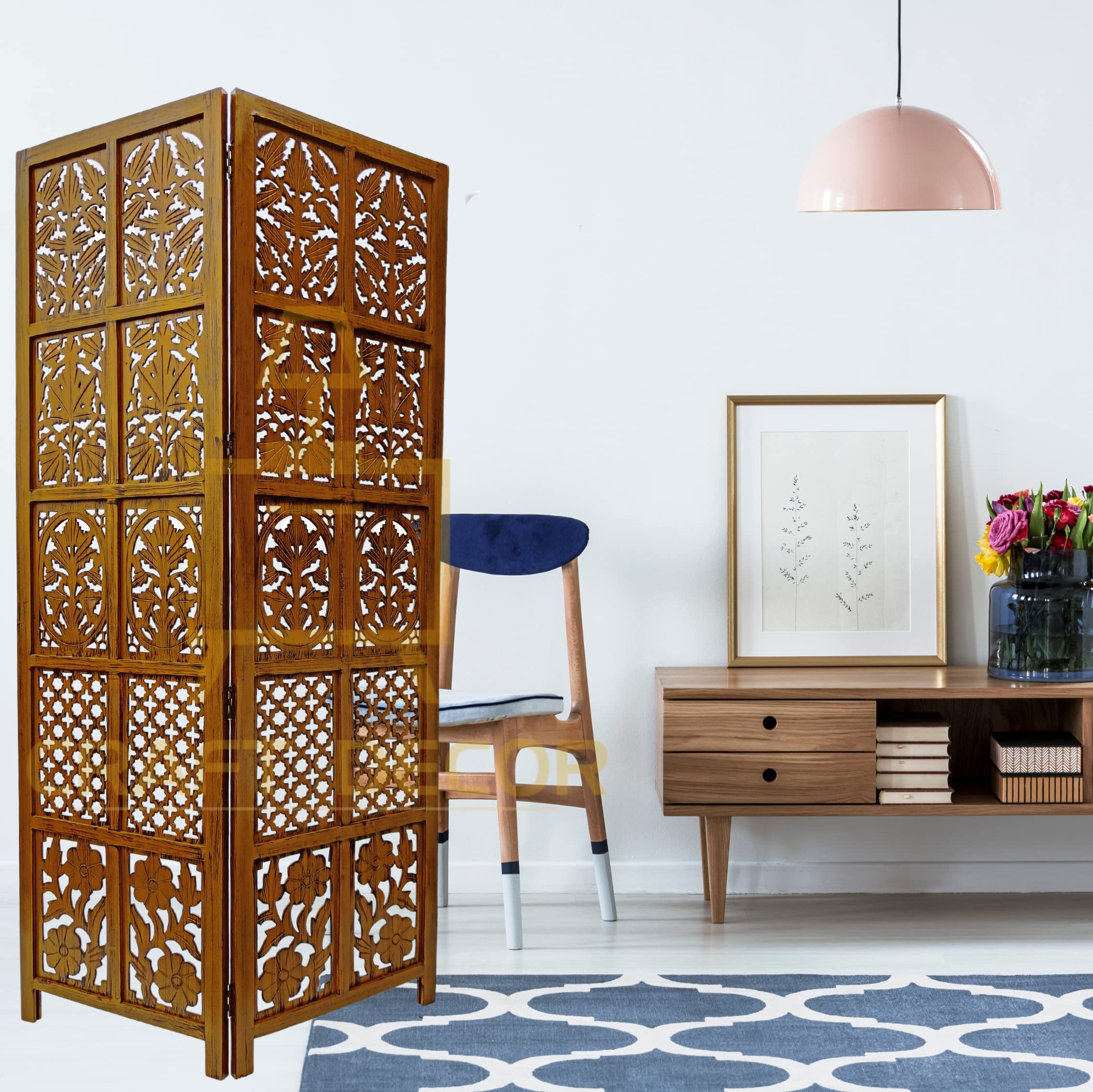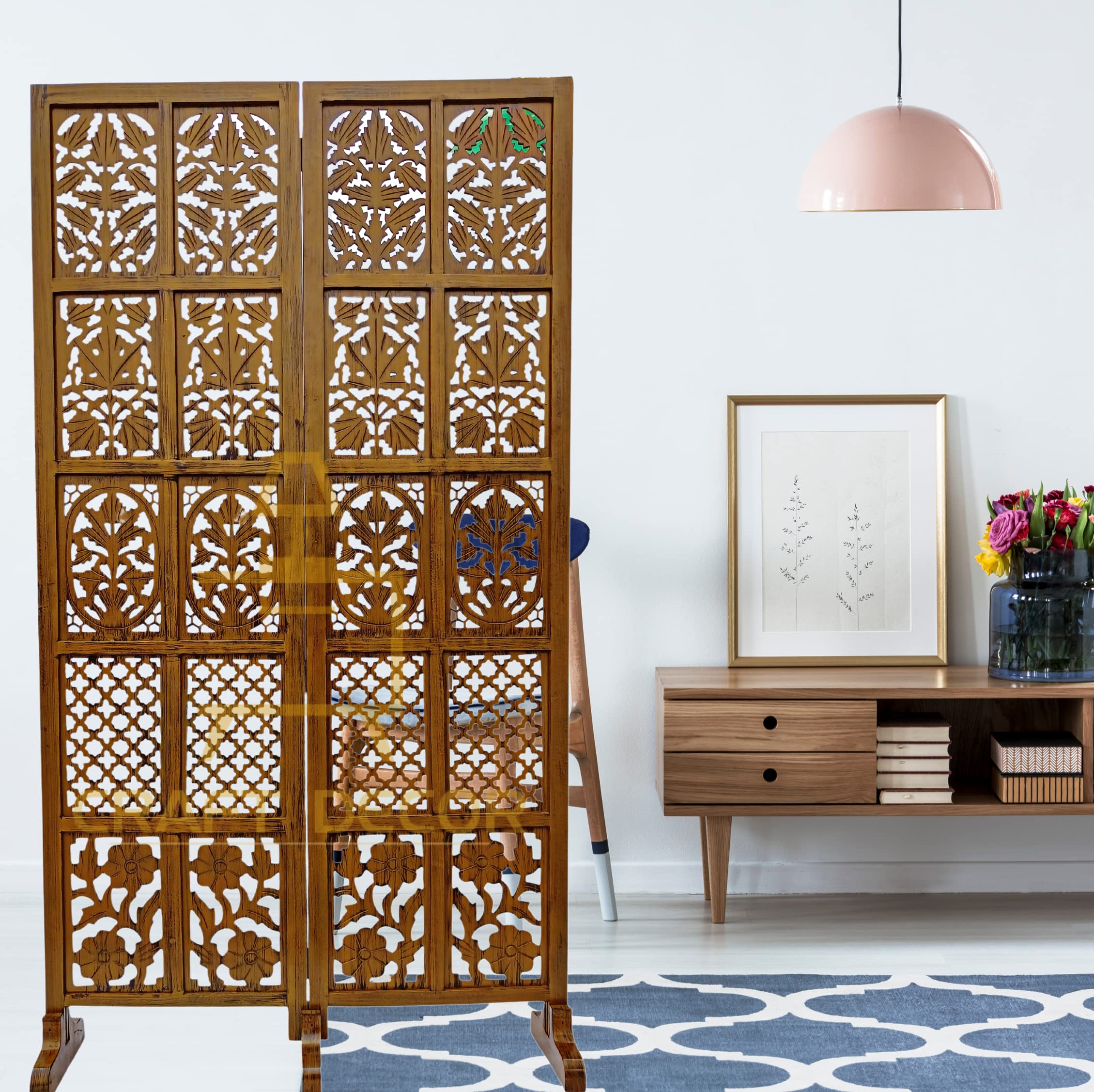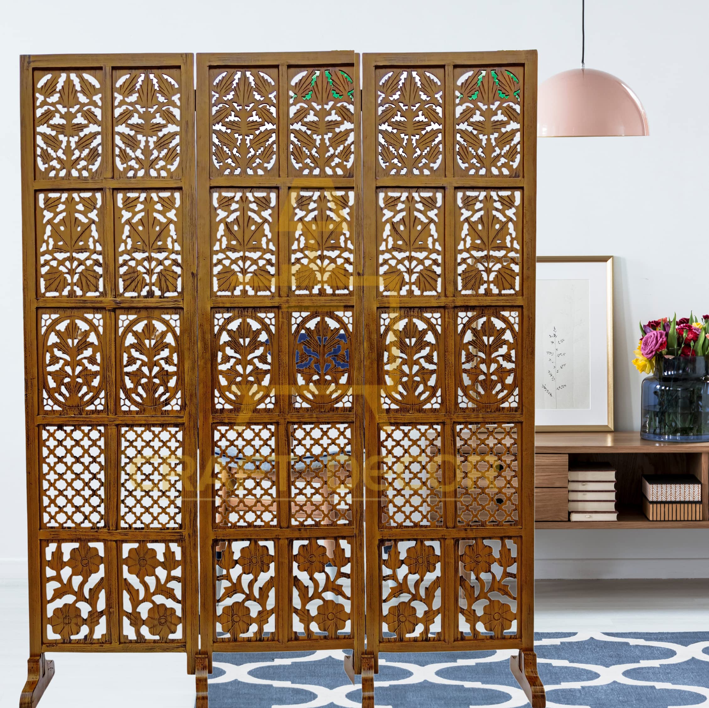 CRAFT DECOR Wooden Room Partition for Living Room, Wood Screen Separator and Wooden Room Dividers, Studio Wall Panel 6 Feet for Living Room/Bedroom/Office/Restaurant/Pooja Room