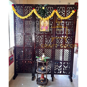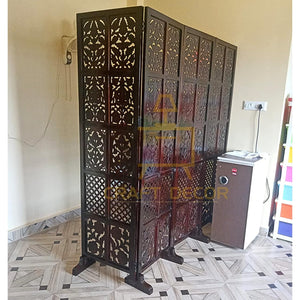 CRAFT DECOR bring you this Handmade Folding Partition Screen / Room Divider made from premium quality Mango Wood with beautiful floral carvings that gives an elegant and traditional look to your living room. The unit consists of 4 panels and each panel comes in a standard size of Height approx. 72 inches (6 feet) and 20 inches wide. We provide shipping to all parts of India. We provide best possible services to all our clients and believe in strong customer relationships