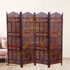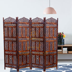 CRAFT DECOR Wooden Room Partition for Living Room / Wood Screen Separator / Room Wall Divider 4 Panels Living Room/Bedroom/Office/ Restaurant/Pooja Room