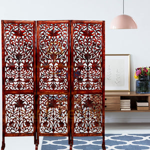 CRAFT DECOR bring you this Handmade Folding Partition Screen / Room Divider made from premium quality Mango Wood with beautiful floral carvings that gives an elegant and traditional look to your living room. The unit consists of 3 panels and each panel comes in a standard size of Height approx. 72 inches (6 feet) and 20 inches wide. We provide shipping to all parts of India. We provide best possible services to all our clients and believe in strong customer relationships