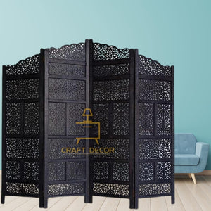 CRAFT DECOR Wooden Room Partition for Living Rooms/Wood Screen Separator & Room Divider 4 Panels for Living Room/Bedroom/Office/Restaurants/Pooja Room(Black)