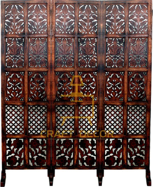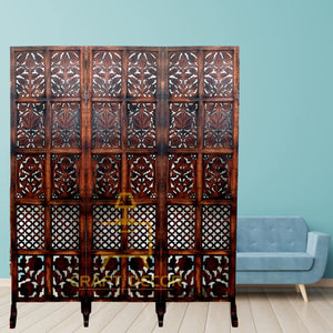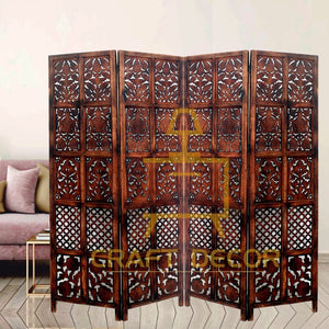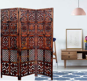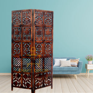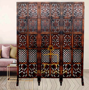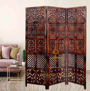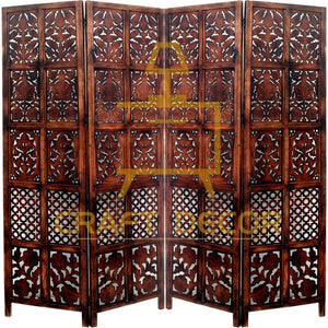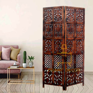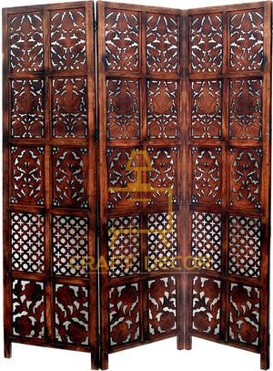 CRAFT DECOR bring you this Handmade Folding Partition Screen / Room Divider made from premium quality Mango Wood with beautiful floral carvings that gives an elegant and traditional look to your living room. Each panel comes in a standard size of Height approx. 72 inches (6 feet) and 20 inches wide. We provide shipping to all parts of India. We provide best possible services to all our clients and believe in strong customer relationships.