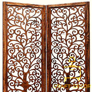 CRAFT DECOR bring you this Handmade Folding Partition Screen / Room Divider made from premium quality Mango Wood with beautiful floral carvings that gives an elegant and traditional look to your living room. Each panel comes in a standard size of Height approx. 72 inches (6 feet) and 20 inches wide. We provide shipping to all parts of India. We provide best possible services to all our clients and believe in strong customer relationships.