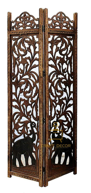 CRAFT DECOR bring you this Handmade Folding Partition Screen / Room Divider made from premium quality Mango Wood with beautiful floral carvings that gives an elegant and traditional look to your living room. The unit consists of 2 panels and each panel comes in a standard size of Height approx. 72 inches (6 feet) and 20 inches wide. We provide shipping to all parts of India. We provide best possible services to all our clients and believe in strong customer relationships