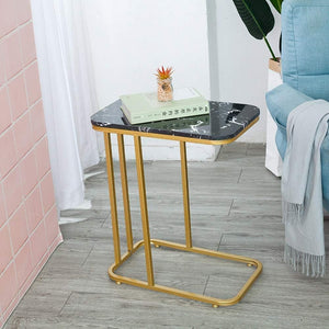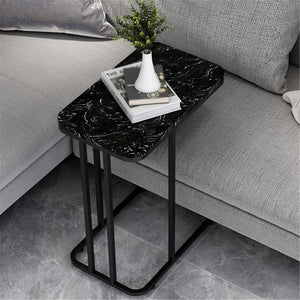 CRAFT DECOR Metal Side Table with Marble Finish Wooden Top for Living Room, Sofa or Bed Side Stand
