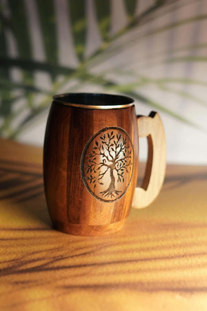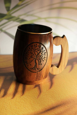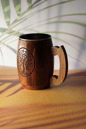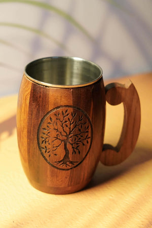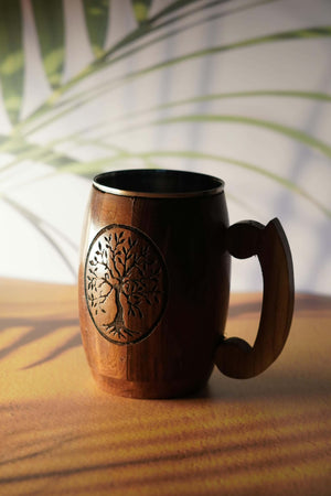 Eco-Friendly Wooden Mug with Intricate Tree Design