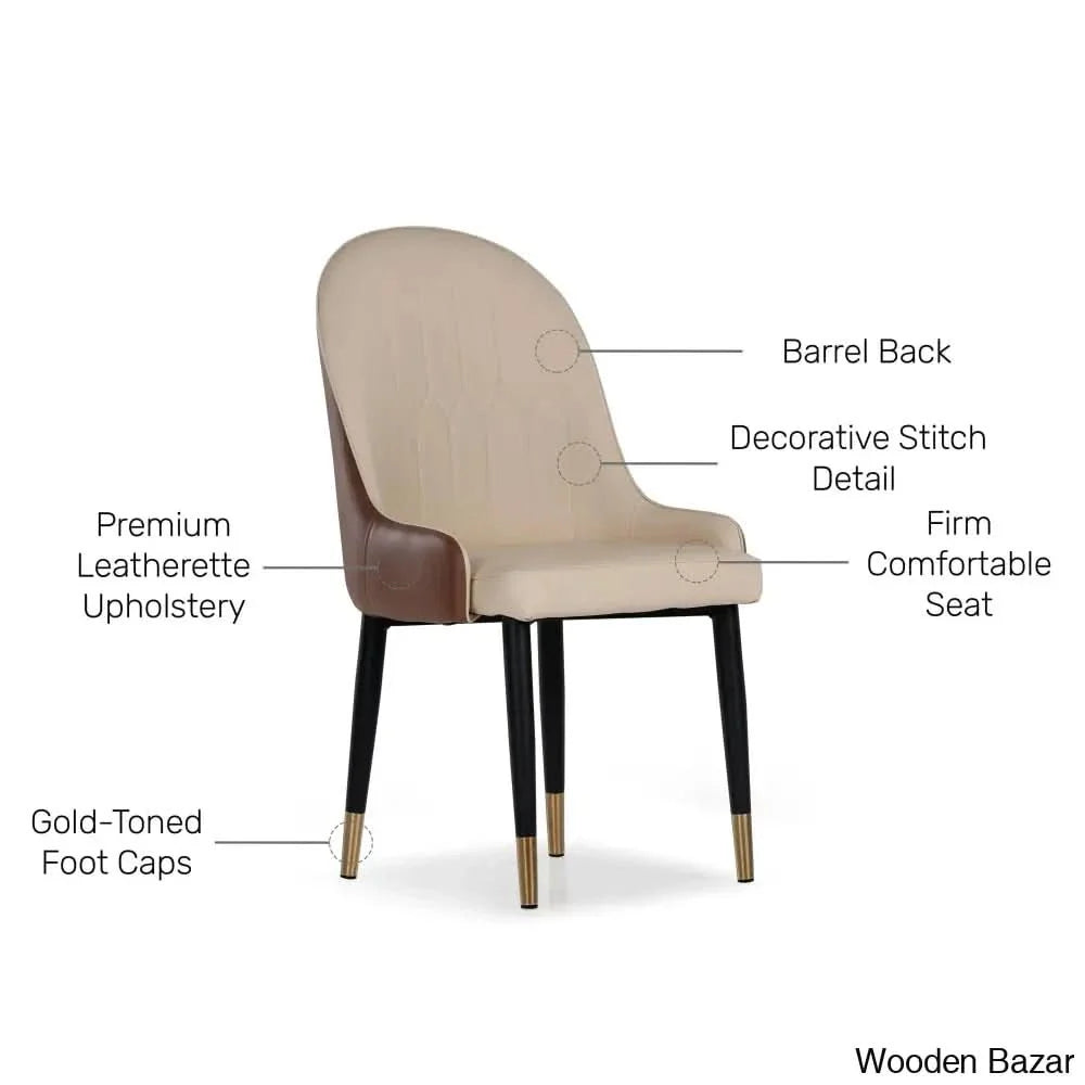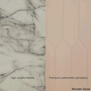 The Craft Decor collection is sleek and modern, with a white marble surface that is enhanced by eye-catching veins and perched on tapering metal legs with golden foot caps. When paired with luxurious leatherette-wrapped barrel back chairs, Craft Decor elevates your dining area with a glamorous touch.