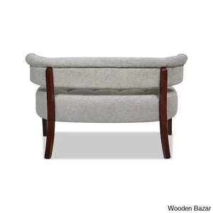 Elizabeth Tufted Linen Armless 2-Seater Settee with Wooden Legs - Craft Decor