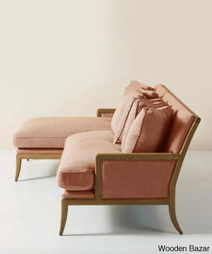 Beautiful teak frame made by hand from premium wood, coated in natural lacquer, and covered in luxurious linen upholstery. cozy for lounging on the couch with your family or entertaining guests.