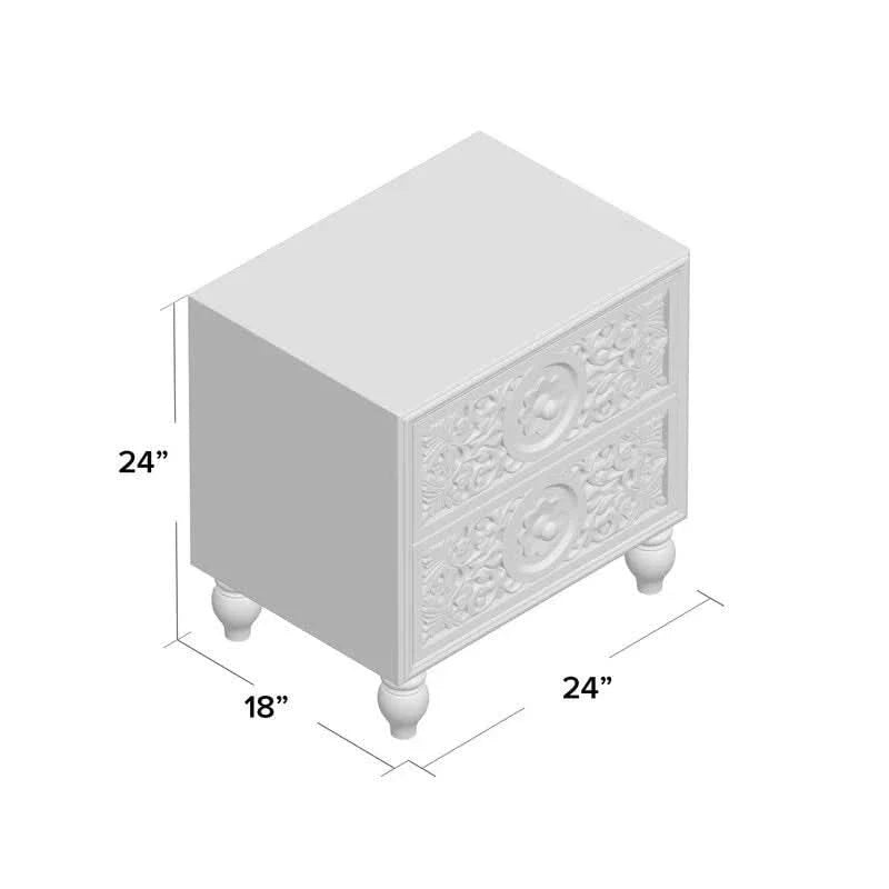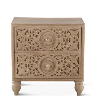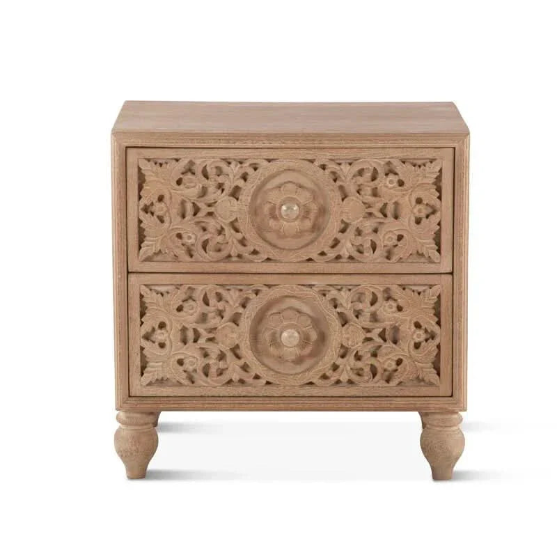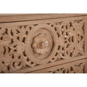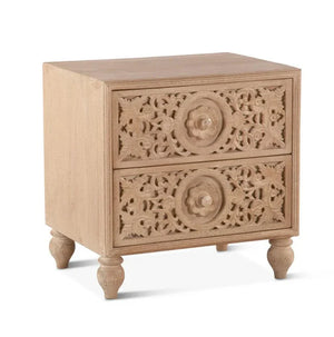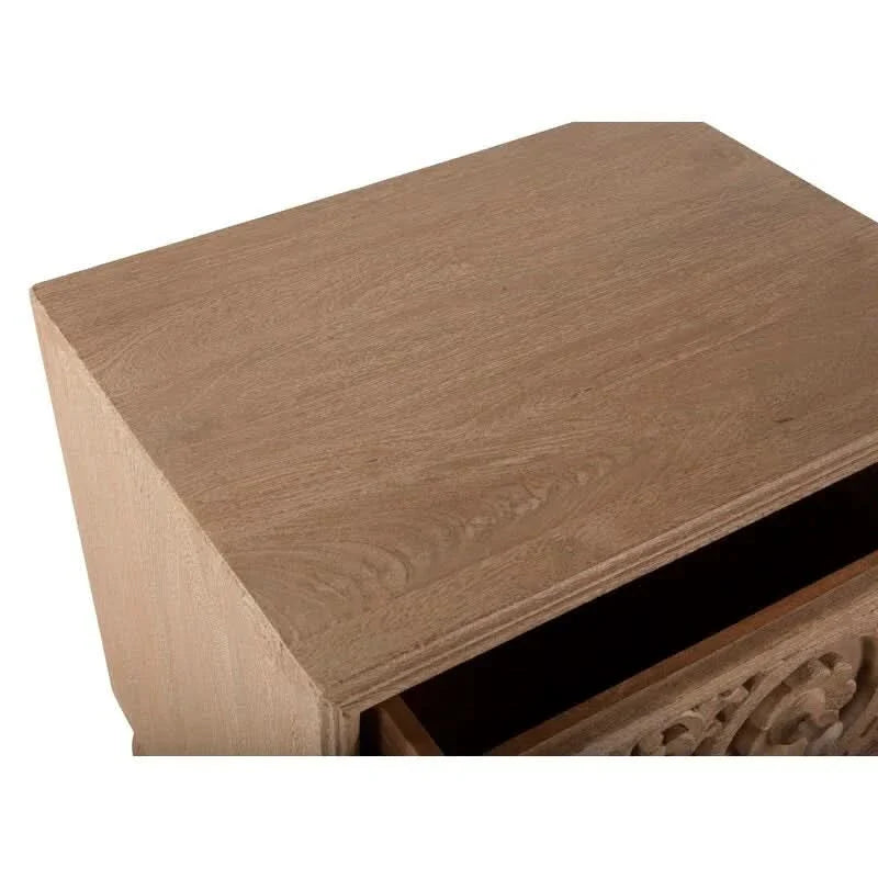 Florence Carving Bedside is made of mango solid wood, hand carved and then finely sanded. The legs are scallops carved with a high polish finish to give the piece an elegant touch. This is strong yet lightweight and beautiful. It will add value to your home and make a wonderful gift.