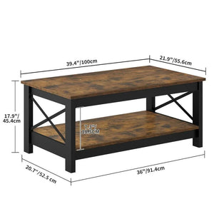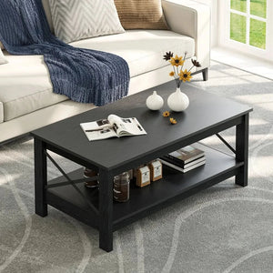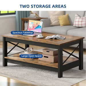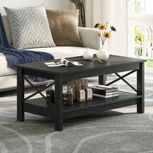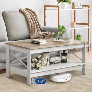 Farmhouse Coffee Table with Storage 2-Tier Center Table for Living Room