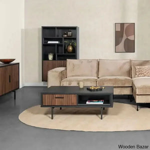 This fashionable furniture line features stands with metal bases. The dark drawers and doors have modest, slender handles and a nice rib effect. Put the tables and cabinets together to make your living space seem good!