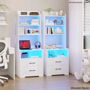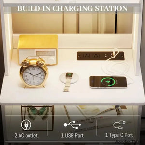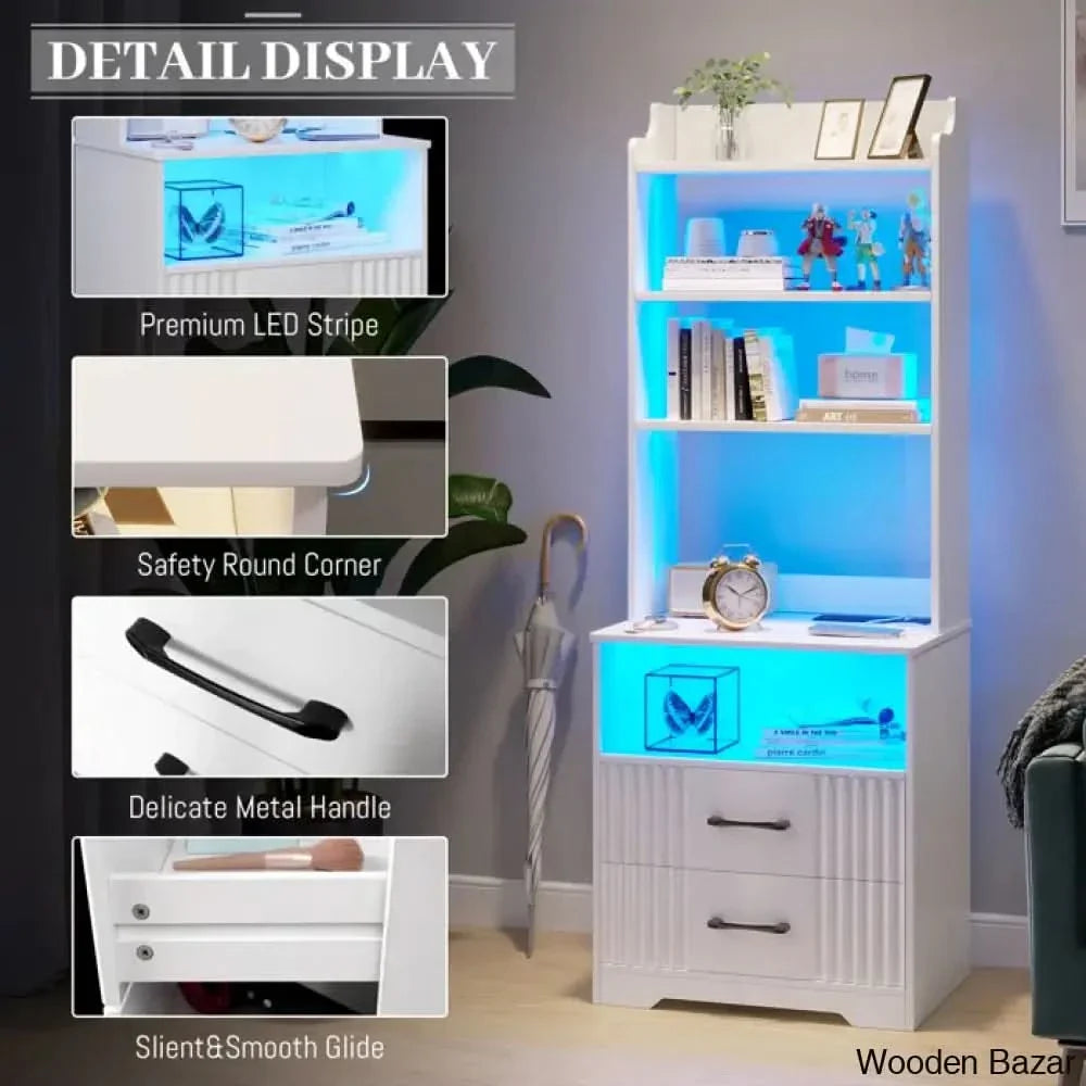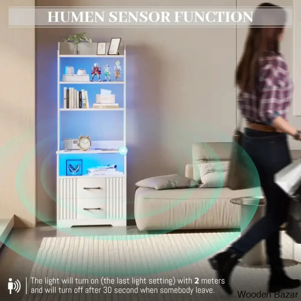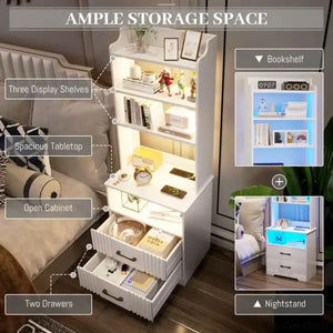 This 2-in-1 Nightstand with Dimmable Light Modes, Standard Outlets, USB & Type-C Port, Human Sensor Function. It can be a storage cabinet, bookshelf, or bedside table, which is a modern and fashion furniture for bedroom, living room, office.