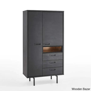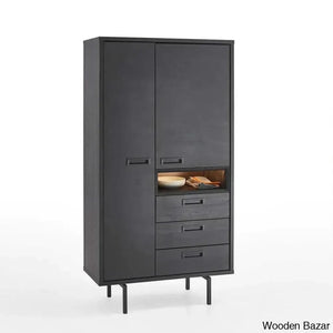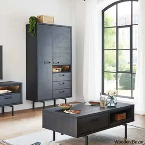 Toledo huge storage cabinet with metal frame, base, and handles, finished in Hunton solid wood. Houston line furniture with doors comes with an opulent soft-close mechanism. Despite the vast range of this living series, you can also pair it with other wooden furniture and a hardwood floor because of the natural wood hue.