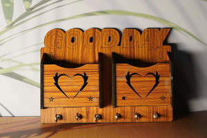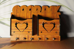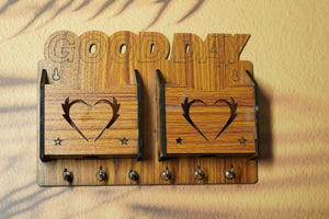 Heartfelt Welcome: Wooden Key Holder with Dual Compartments and Key Hooks