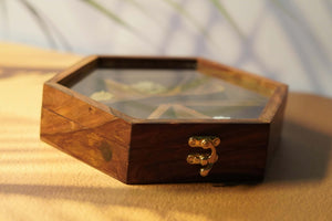 Hexagon Wooden Spice Box with Glass Lid and Spoon