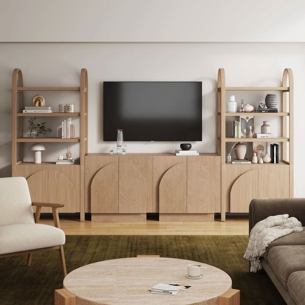 Iris Wooden Accent Cabinet, Sideboard Credenza or TV Stand with Arched Cabinet Doors and Adjustable Shelves