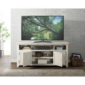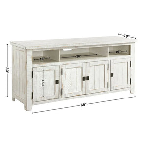 Indulge in the perfect harmony of rustic charm, farmhouse elegance, and coastal style. Our Nantucket TV stand is a statement piece that transforms your living room or family room into a haven of sophistication. The look of reclaimed lumber gives this entertainment center unique character that truly stands out. With three open component cubbies and three adjustable and removable shelves, this TV console provides ample storage space for your media components. Its cable management cutouts ensure that your cords are organized and hidden from view. This media console accommodates 60", 65", and most 70" flat screen TVs. The versatile design also allows this piece to double as a credenza, sideboard, or entryway accent cabinet. Assembled dimensions: 65" W x 19" D x 30” H