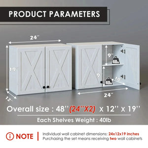 - Versatile Design - Measuring one piece of the wall cabinet set, it's it's 24"W x 12"D x 19"H. This unique size allows you to place this farmhouse cabinet either on the wall or on the floor.