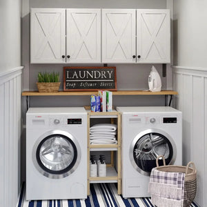 - Maximize your storage space - These two wall cabinets, styled with a charming farmhouse design, offer 4 doors each. The X-line panels add a rustic touch while providing generous storage space for all your needs.