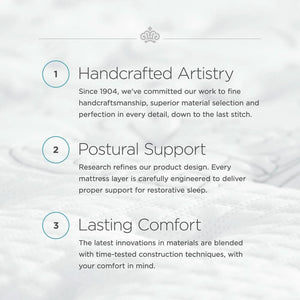 Experience a new level of luxury sleep with the Kingsdown Passions Merridale 13.5-Inch Hybrid Premium Mattress Collection. Designed with handcrafted quality and advanced features like tri-zoned coil support and foam infusions, this mattress delivers undeniable comfort for a rejuvenating sleep experience. Choose from Firm or Cushion Firm options to suit your preferences. Enjoy the benefits of Soft, Fresh Comfort® Quilt and Tri-Tech Gel Infused Memory Foam that maintains ideal body temperature for cooling and fresher sleep. The Tri-Zoned Support System with Posturized Center Support provides personalized support, particularly for the lumbar area. Certified by the Sleep to Live Institute to deliver proper postural support, this mattress is handcrafted in the USA and made-to-order.