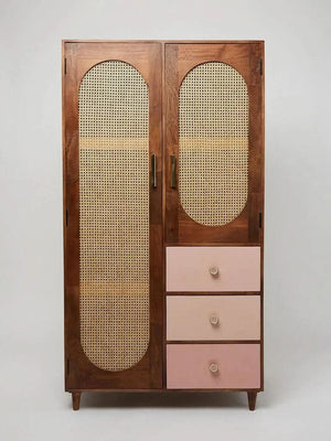 Kiwian Rattan Solid Wood Wardrobe - Craft Decor