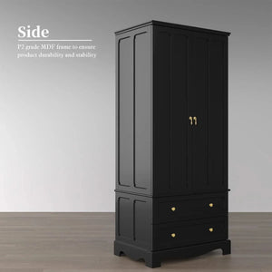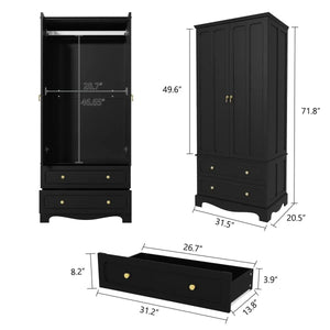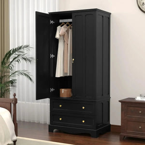 Lavaska Freestanding Wooden Wardrobe Armoire with 2 Drawers