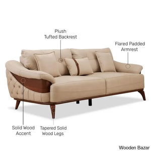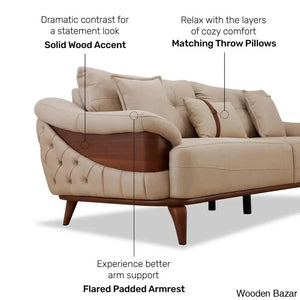 Our Craft Decor Collection combines the plush softness of Nubuck cloth with contemporary sensibility. With classic tufting and sophisticated solid wood details, Veronica subtly improves your living area. The sofa may be made into a daybed by lowering the adjustable headrest, and the throw pillows are detachable to enhance comfort. This sofa set, which includes two three-seater sofas and one lounge chair, adds a contemporary touch to your house.
